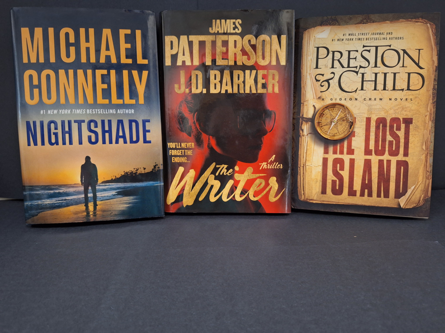 3 New Hardback Books- The Lost Island (Preston & Child), Nightshade (Michael Connelly) & The Writer (James Patterson)