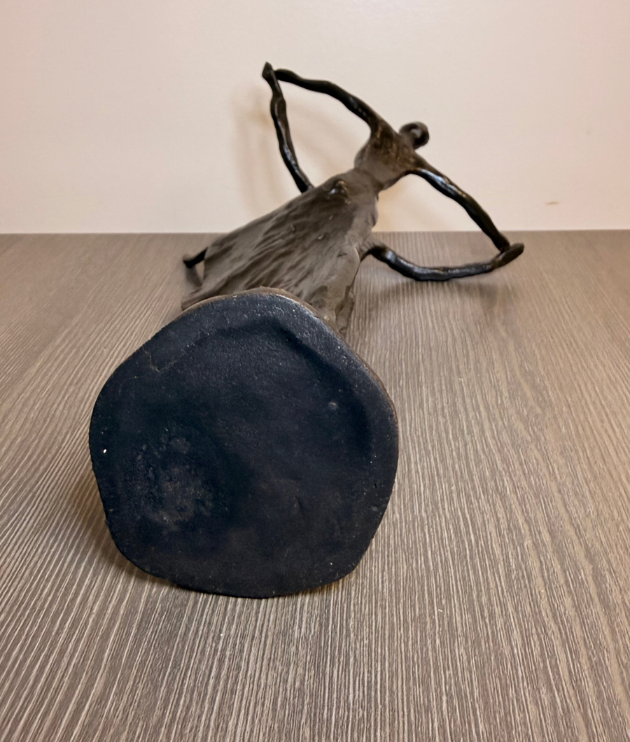 This abstract statue features stylized figures of two people dancing. The color is bronze and the piece is heavy, however, the material is unknown. This would make a lovely gift for a birthday, wedding, or for your dance partner.