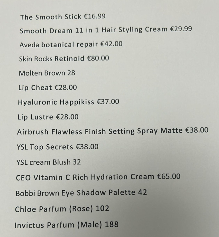 Selection of cosmetics and perfumes from Brown Thomas, Galway