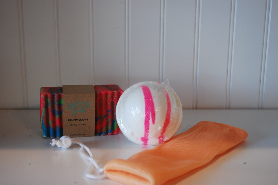 his bundle features a fruity loopy scented soap that will leave your little ones smelling sweet and feeling fresh. To keep their soap safe and stylish, we've included a charming soap holder that adds a touch of whimsy to any bathroom. And that's not all—this bundle also comes with a magical mermaid scented bath bomb that will transform bath time into an enchanting adventure.