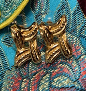 #1005 - Vintage Burberry’s of London gold-plated pierced earrings. Elegant and classic, showcasing Burberry’s signature craftsmanship. Gently Used / Not redeemable for cash.