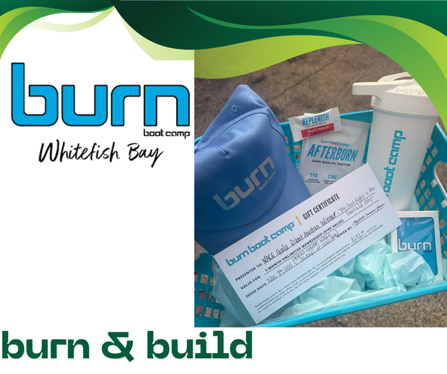Take on a new fitness adventure with this Burn Boot Camp gift package. Perfect for anyone ready to challenge themselves, increase endurance, and enjoy a motivating and results-driven environment in Whitefish Bay. This package includes a one month unlimited membership $192 value, expires 12/7/2025 and Burn Boot Camp Swag to include a water bottle, hat, and replenishment goodies. Courtesy of Burn Boot Camp in Whitefish Bay
