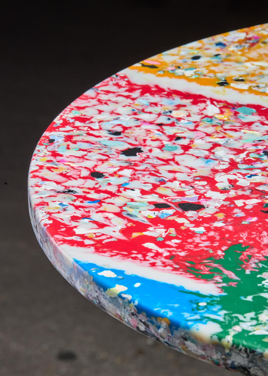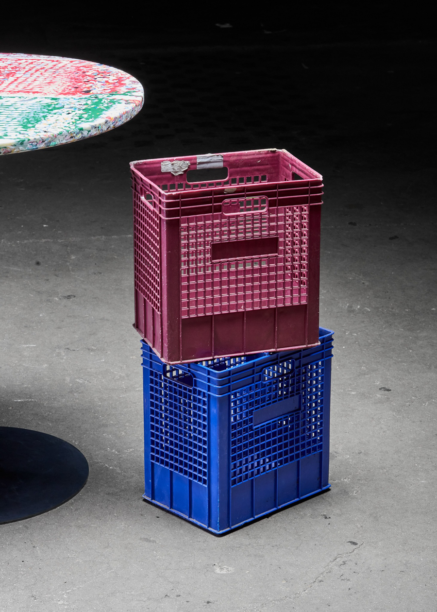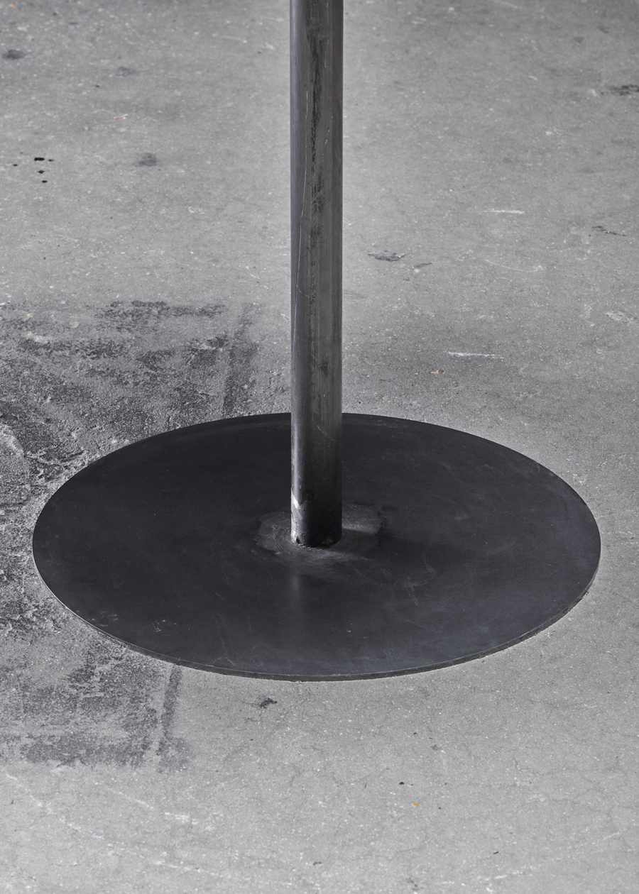 Raw steel tube and sheet, recycled plastic sheet (from SNCB storage boxes) In collaboration with Bel Albatros ⌀ 70 x 75
