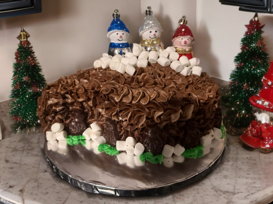 Chocolate cake with chocolate icing donated by Lois Dolan