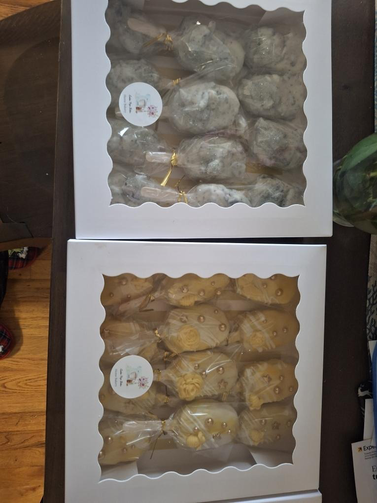 Includes: 1 dozen dipped oreo, 1 dozen cake pops, 1 dozen chocolate dipped rice krispy treats