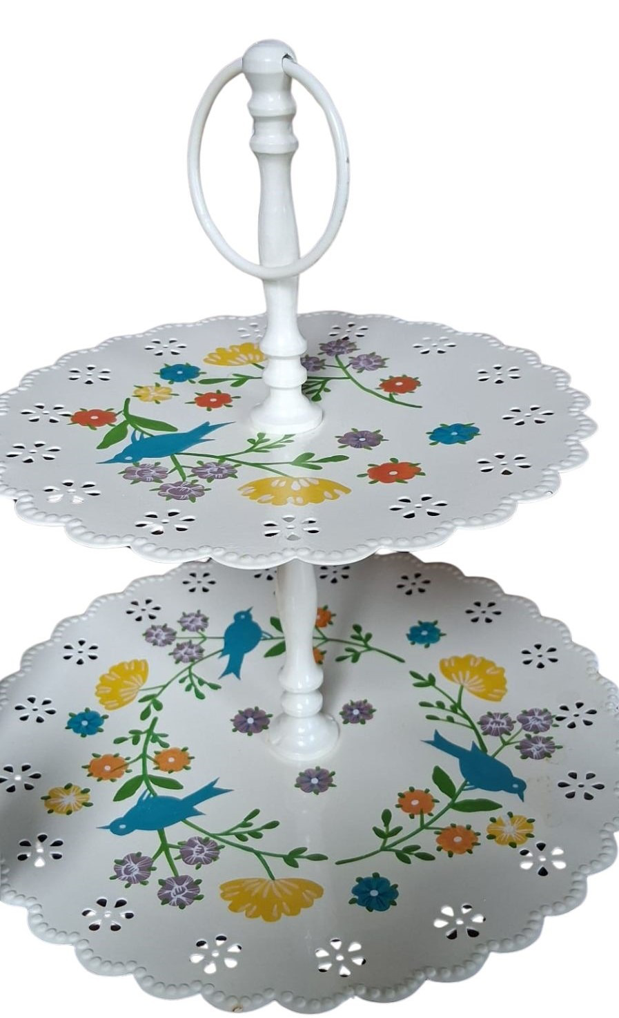 Metal Cake Stand 27cm height, bottom plate 26cm wide, top plate 19cm wide