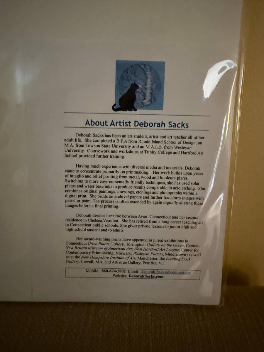 Adorable print by Connecticut artist Deborah Sacks. It is titled "The Critic" and measures 8.5" x 11". It is ready to pop into your favorite standard-size frame!