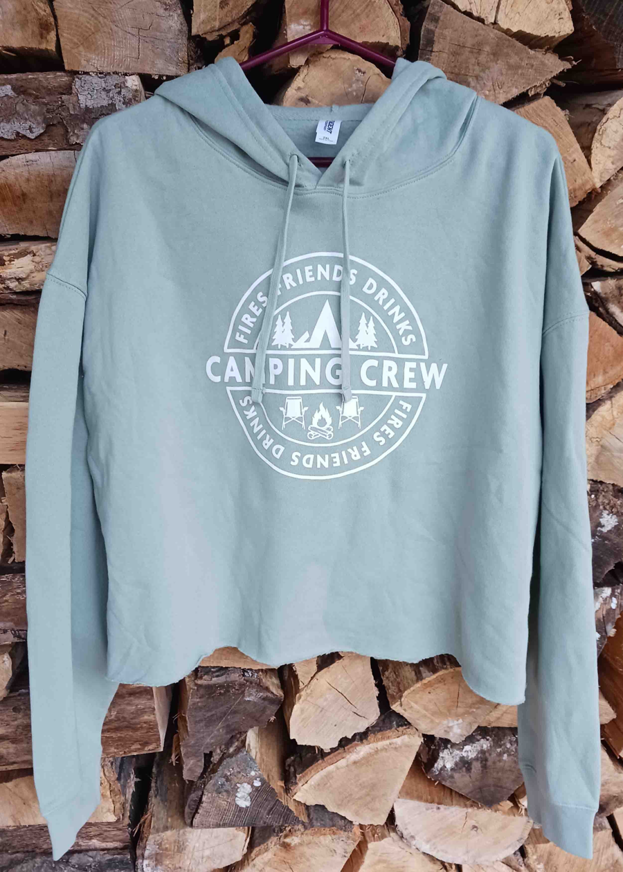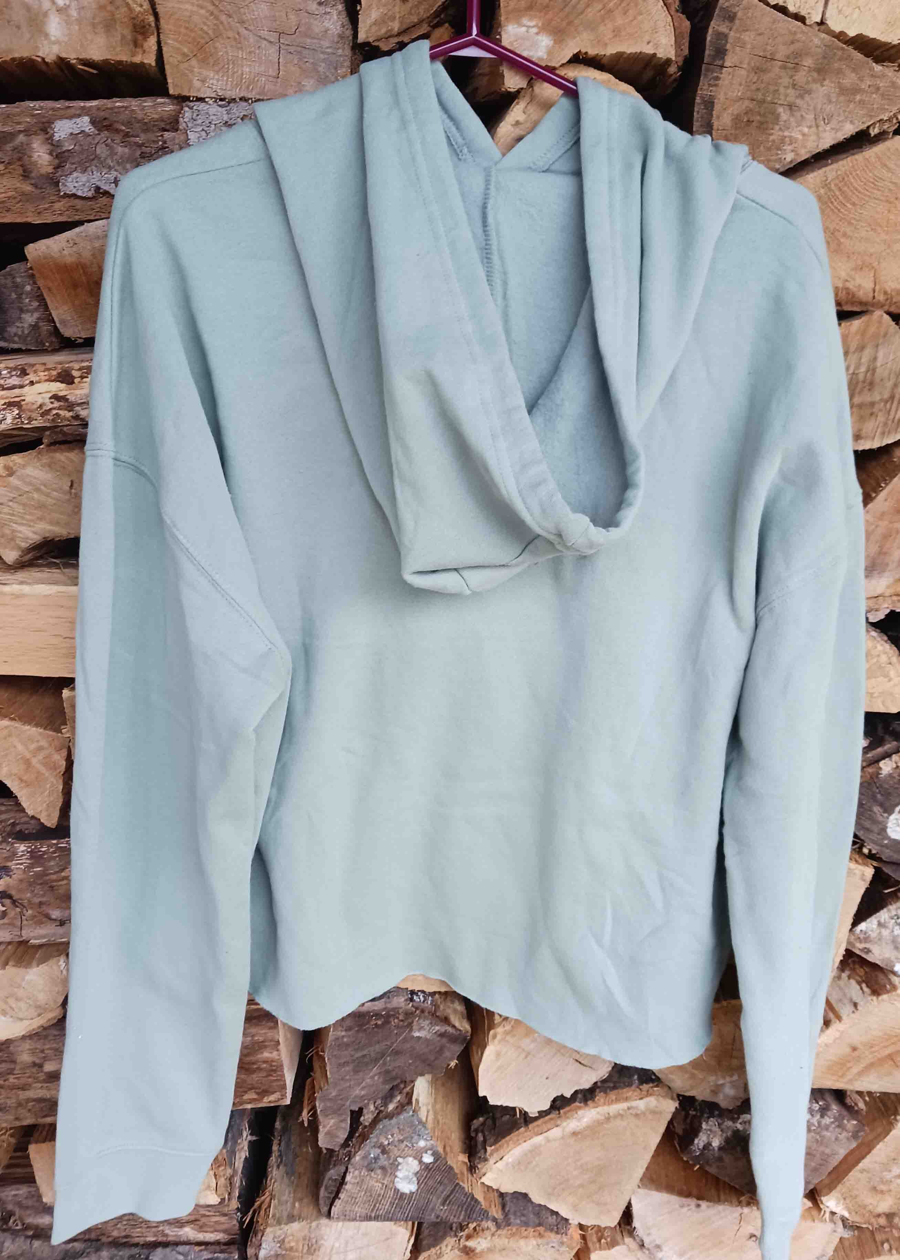 Super soft, pale blue coloured ladies' hoodie in 2XL Short length - cut-off at the waist. 80% cotton - 20% polyester