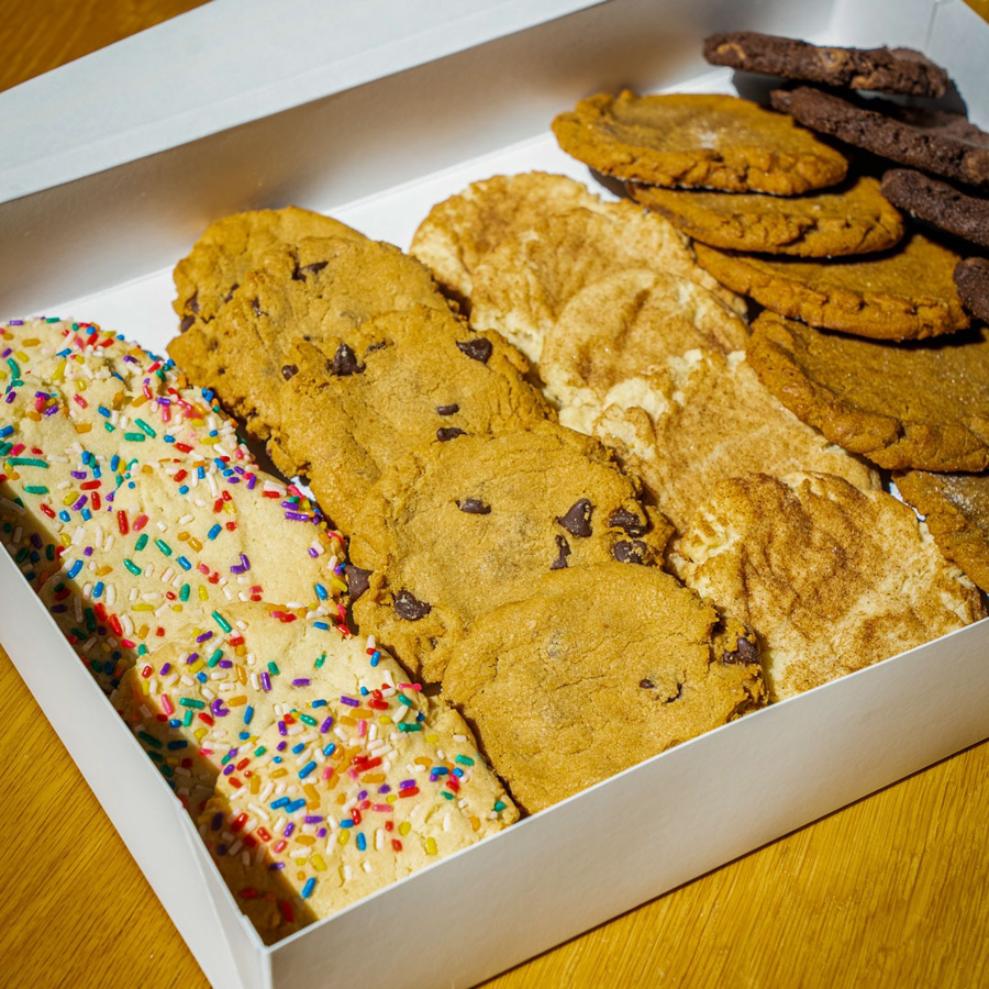 A bakery box of 25 freshly baked cookies. Please let the cookie experts know if you have any specific flavor preferences! They offer Chocolate Chip Cookie, Snickerdoodle Cookie, Confetti Cookie, Double Chocolate Cookie, Oatmeal Raisin Cookie, Ginger Molasses Cookie, Peanut Butter Cookie, and Vegan Chocolate Chip. https://captaincookiedc.com/product/cookie-box/
