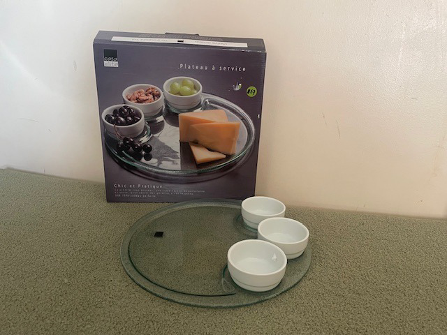 "CASA ELITE" Glass Platter (12 inch) and 3 porcelain bowsItem Number: 074Category: MiscellaneousRetail Value: CAD $35.00 Bidding Starts at: CAD $10.00 0 Bids Bid Enter CAD $10.00 or more Auto Bid Buy Now for CAD $12.00 Minimum Bid Increment: CAD $2Time Left 25 Days : 02 Hours : 10 Minutes : 34 SecondsEnds: Mon, Jan 01, 0001 12:00 AM