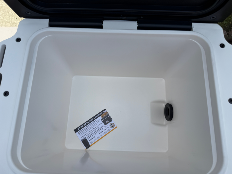 CAT Cooler from Gregory Poole, Life time warranty, Holds up to 24 cans and a bag of ice with room to spare, 27 Qt cooler, made in USA