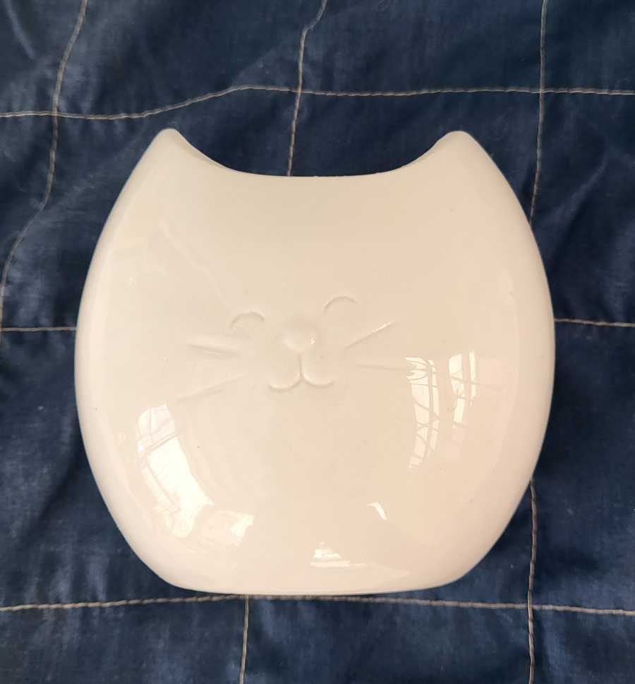 This lovely planter with a smiling kitty face would make a lovely gift! Measures about 3.5" x 4" x 4" tall.
