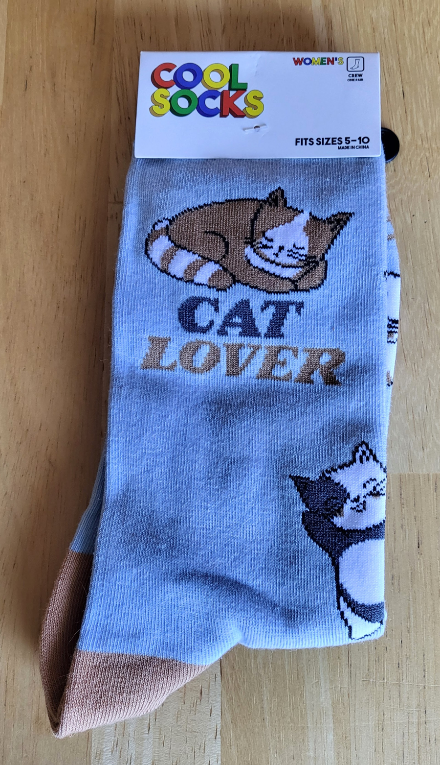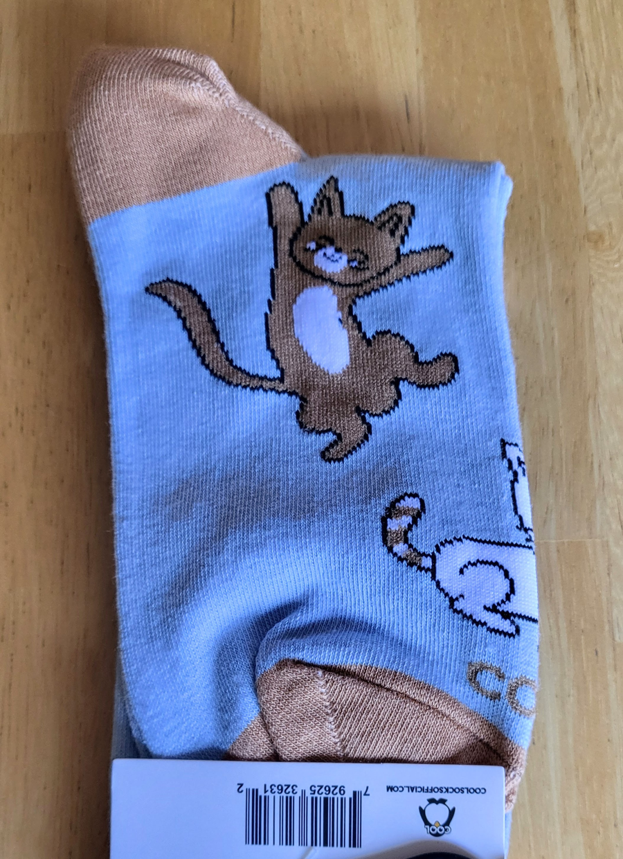 Playful and sleeping kitties adorn these grey socks with tan accents. Fits women's sizes 5-10.