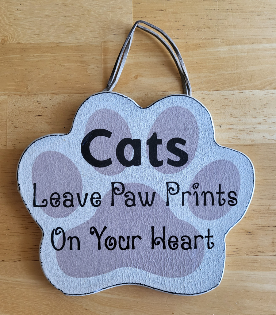 "Cats Leave Paw Prints on Your Heart" Plaque