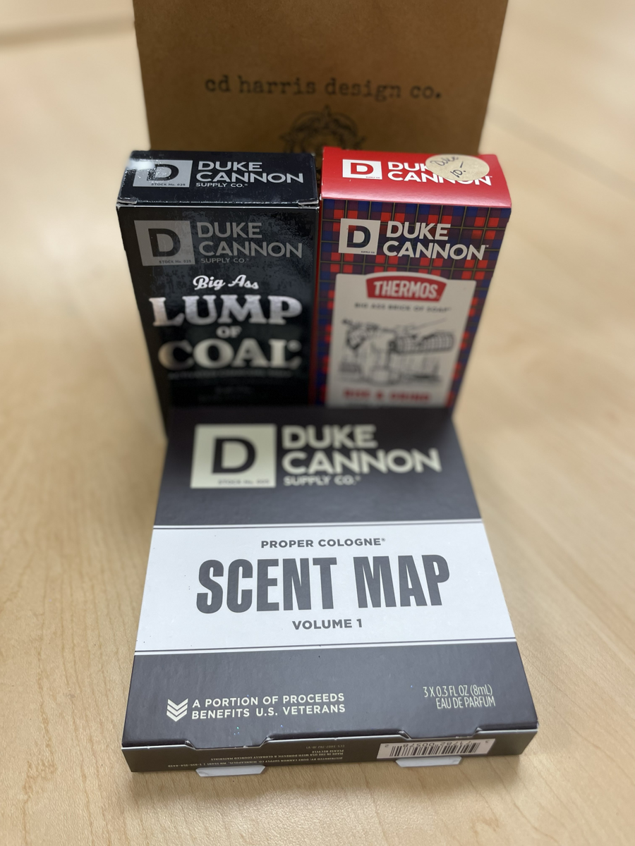 Duke Cannon: "Scent Map"- Sawtooth (Alpine Air + Cedarwood)/Huron (Fresh Water + Neroli)/Midway (Citrus + Sandalwood) Scents
