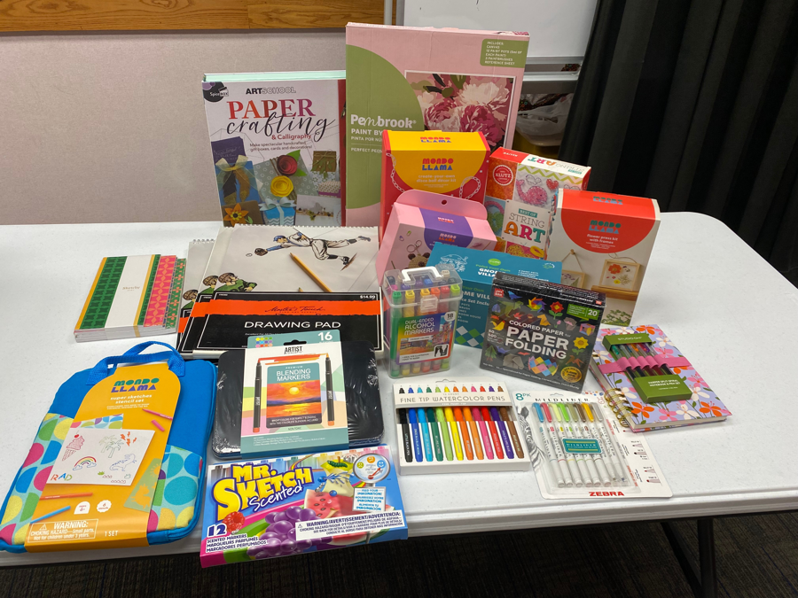 Crystal Sea Turtle Kit, String Art Kit, Paper Crafty & Calligraphy Set, 5 Patterend Sktech Books, 3 Large Drawing Pads, Stencil Set, Paint by number large kit, Crochet Keychain set, Make Your Own Disco Ball Kit, Scented marker set, Flower Press Kit with frame, midliner pen/marker set, Paint Your Own Gnome Village Kit, Dual-ended alcohol marker set, Floral Spiral Notebook & Pen Set, Fine-tip Water Color Pens, Set Blending Markers, Colored Paper for Paper Folding, Makerspace Totebag & Pin, Watercolor Pad