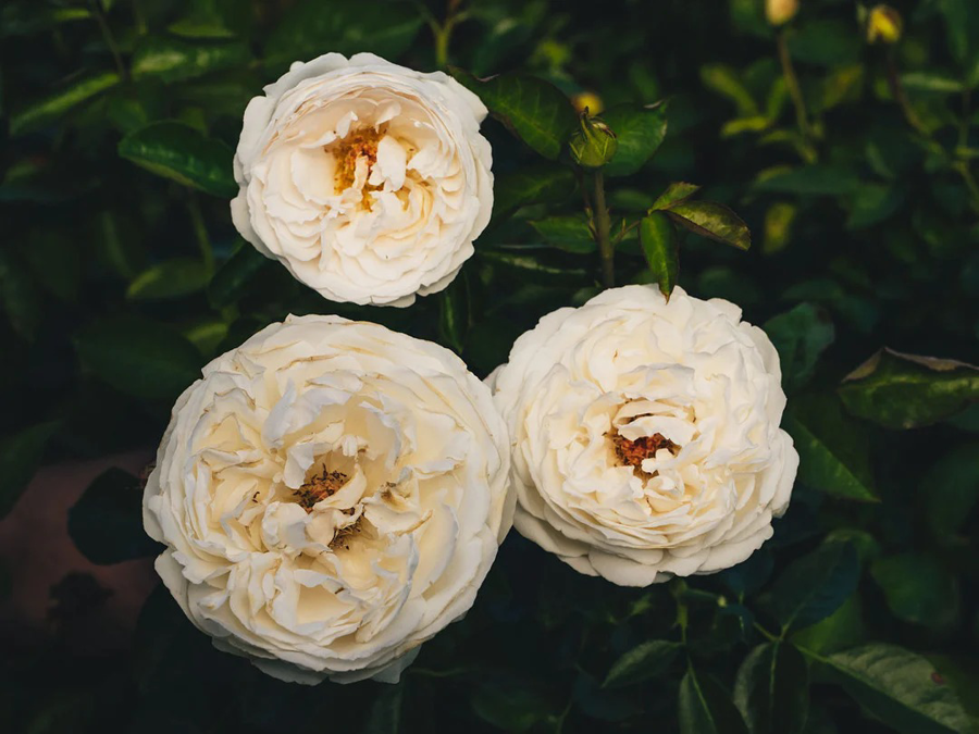 Shrub Chamonix is an exquisitely refined rose that radiates quiet luxury and grace. Its blooms open in creamy white tones softly kissed with hints of pale ivory and butter, creating a luminous effect that evokes freshly fallen snow in the morning sun. Each flower is densely layered, with petals that curl delicately inward, forming a sumptuous, rounded shape.