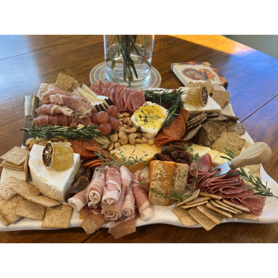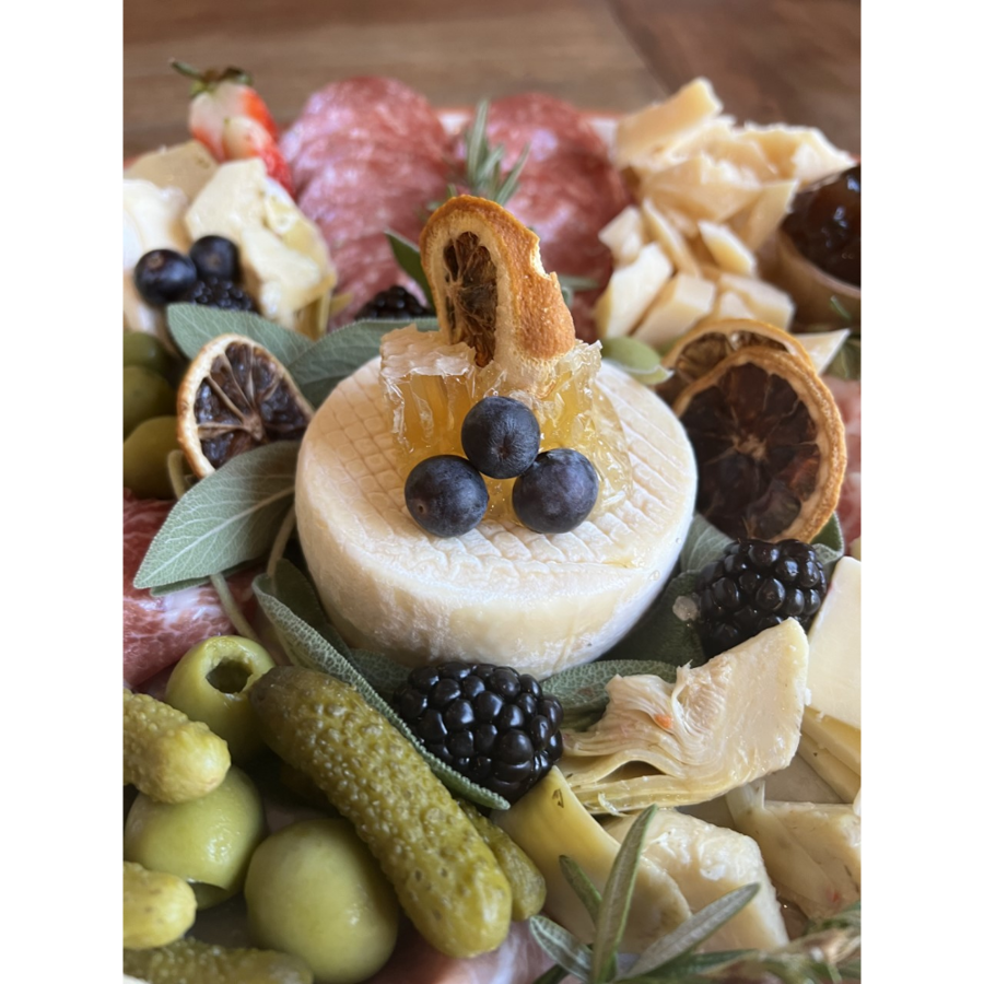 Heather will create a gourmet charcuterie board just for you. Your purchase includes the actual board, along with cheeses, meats (or not), olives, fig spread and honey, fruit garnishes, candied nuts, and assorted crackers. She will work with your allergies and preferences. Pictures show actual boards Heather has created recently.