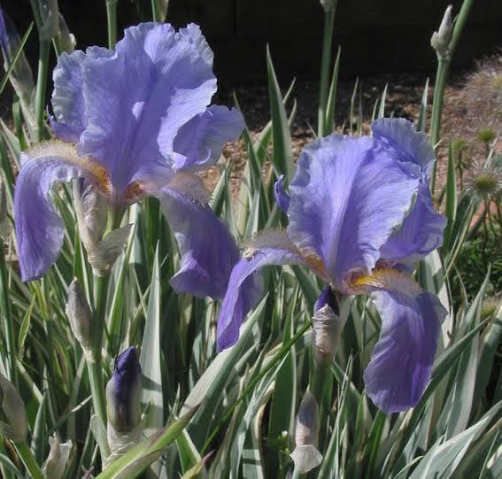 This award-winning heirloom bearded iris hybrid, introduced in 1916, is similar to I. pallida with the same disease-free foliage that lasts all summer (unlike so many bearded iris) and slender well-branched flower stalks that stand without assistance. The small flowers are pale violet-blue with long white beards that are tipped with yellow. This variety came from the garden of late great British horticulturist Graham Stuart Thomas, enough said! 46” tall.