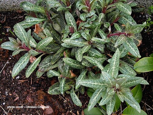 This lysimachia is grown mostly for its beautiful foliage. It has broad green and white foliage with insignificant violet flowers. 18"wide x 12" tall