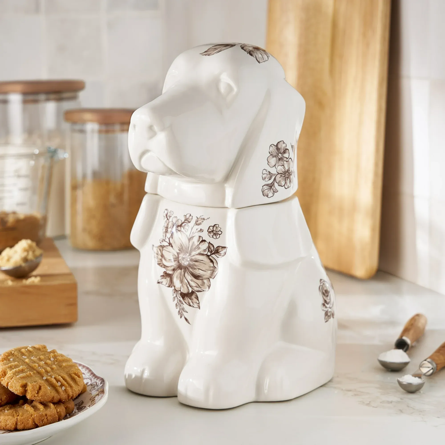 Pioneer Woman Agatha Stoneware Charlie Cookie Jar. Cream and brown. measures 11 inches tall and 8.75 inches wide.