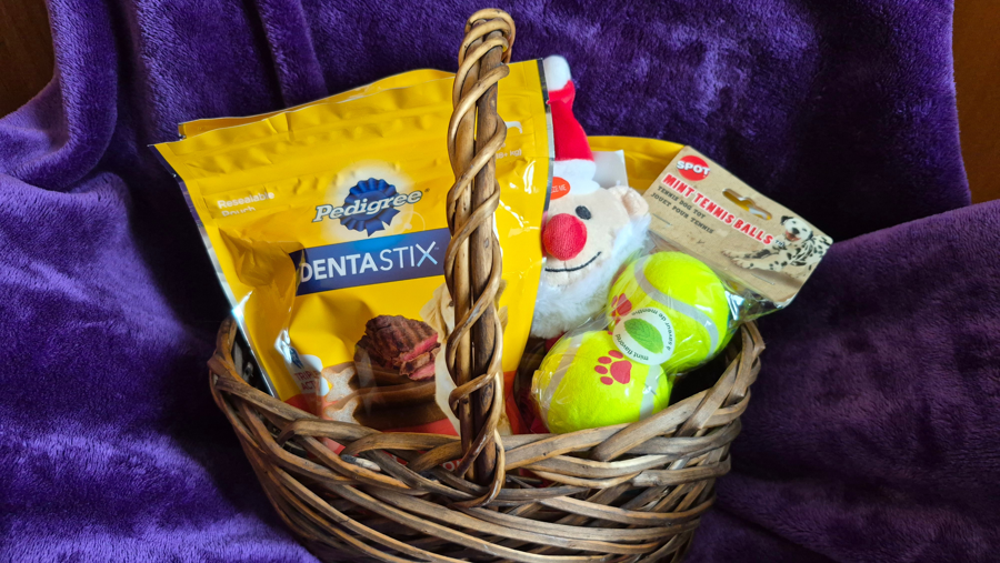 Treat your furry friend to a tail-wagging good time! This bundle includes three packs of 18 dental sticks, perfect for keeping their teeth clean and their smile bright. They’ll also enjoy a festive Santa dog plush toy and two classic tennis balls for endless playtime. To top it off, enjoy a $20 Chewy.com gift card to spoil your pup with even more favorites!
