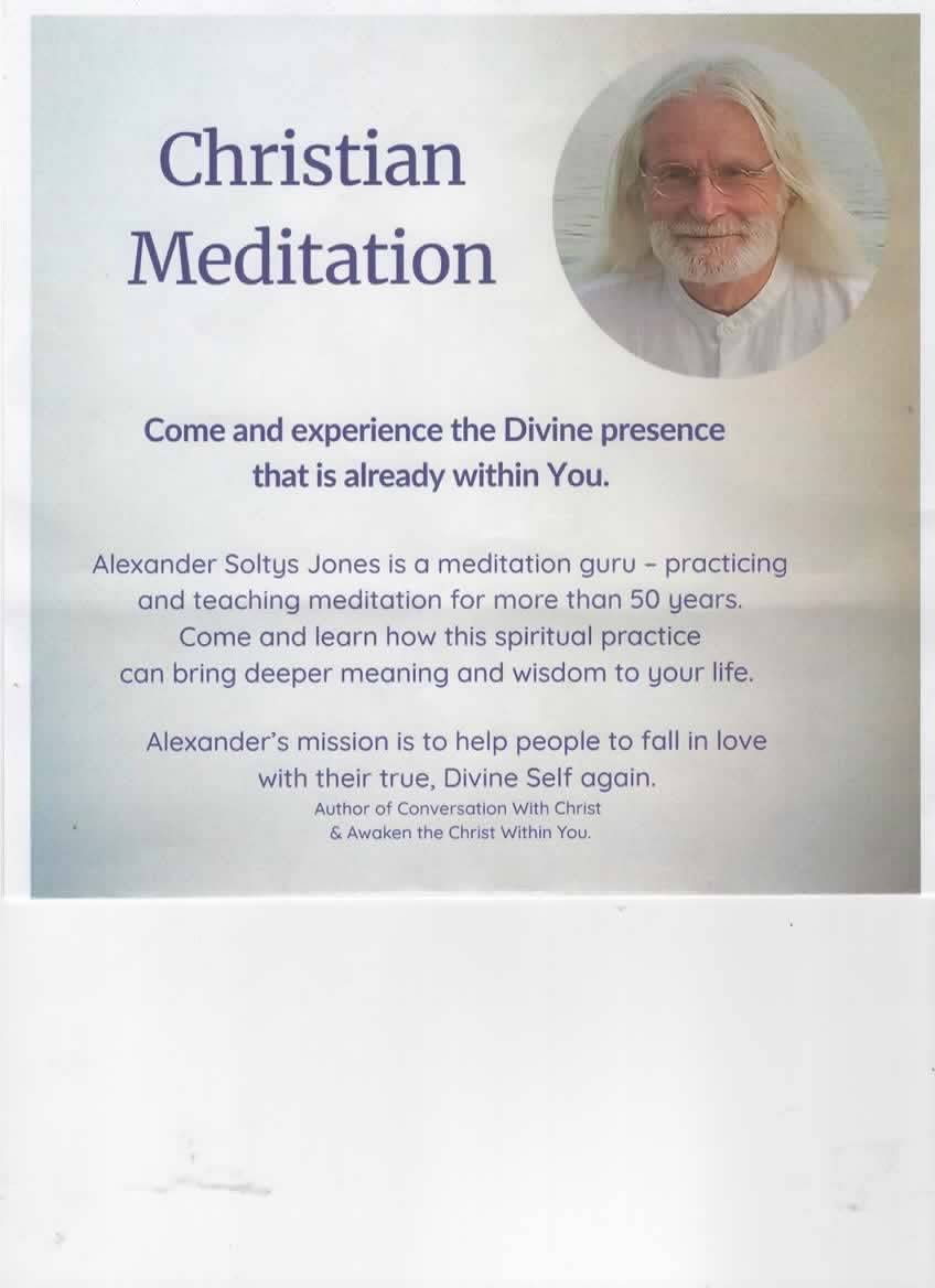 Personal instruction in Christian Meditation or Spiritual Direction from Alexander Soltys Jones. This auction item offers the successful bidder either five personal/private sessions to learn/practice Christian Meditation or receive Spiritual Direction. The successful bidder can choose to invite a few family/friends to join the Meditation classes as their guests. You can do this in the comfort of your own home (within 10km of Huntsville or Port Sydney) or other location and time agreed between the successful bidder and Alexander.