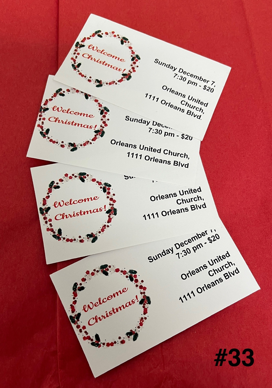 Feel the Christmas spirit with 4 passes to the Cumberland Community Singers Welcome Christmas Concert. It is on Sunday Dec 7 at Orleans United Church.