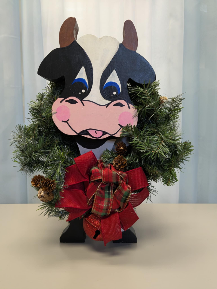 Celebrate your holidays with this wooden Christmas cow that stands 18-3/4 inch tall.