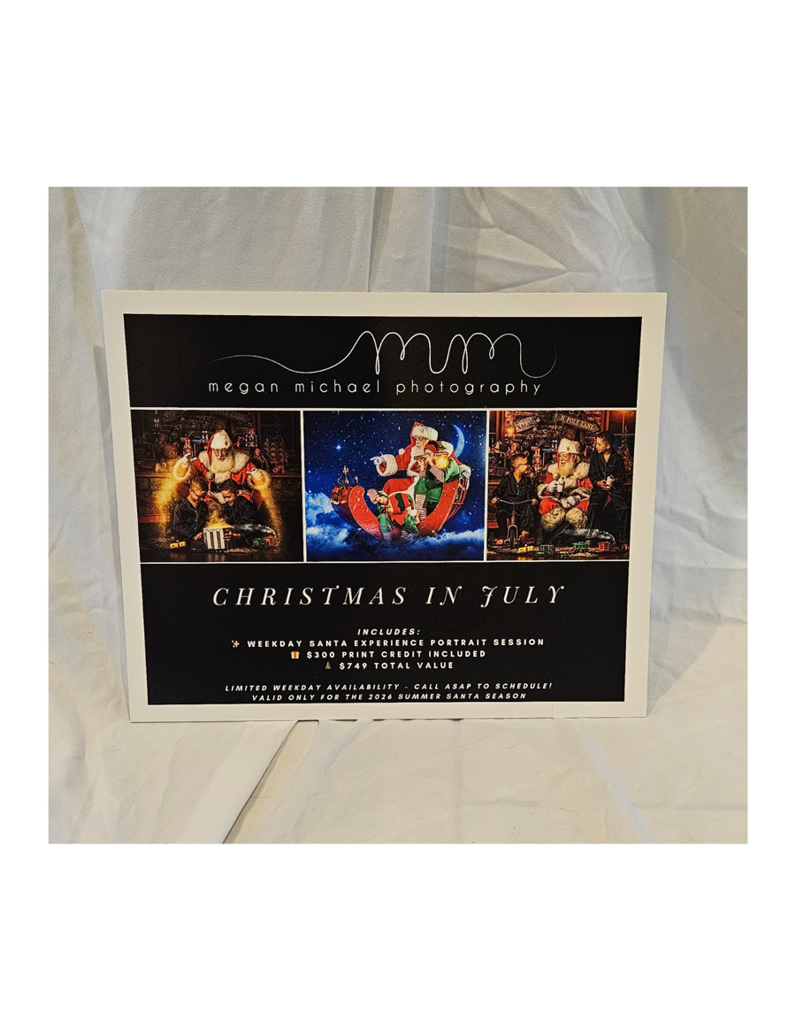 Step into the magic of Christmas with a one-of-a-kind interactive Santa experience your family will never forget - complete with storytelling, wonder and timeless portraits with a magical weekday Santa experience Summer session with Megan Michael Photography! The certificate includes a $300 print credit to use toward your artwork. Must contact Megan Michael Photography within 15 days of receiving the certificate to schedule your session. Session must be completed by August 1, 2026.