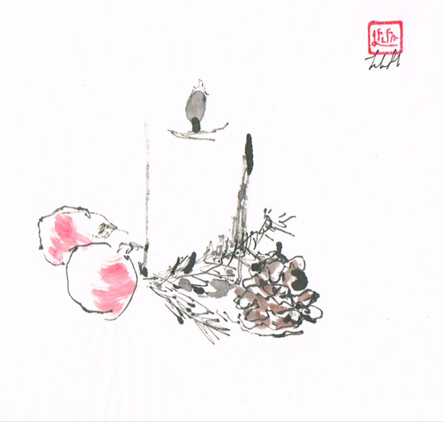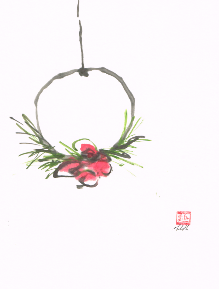 🎄 “Christmas is Here” — Original Ink & Watercolour by Lilith Ohan