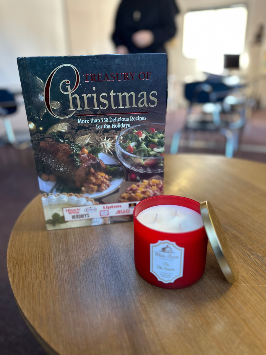 This lovely pre-loved Christmas cookbook with recipes galore is coupled with a candle with a scent that will take you right under the Christmas tree.