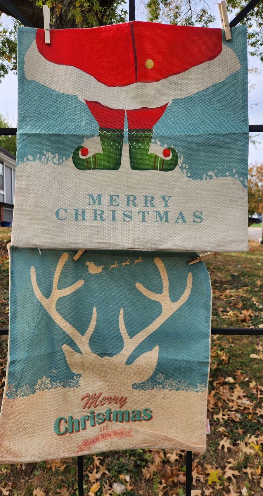 Bring the merry and the bright to your holiday décor with this cheerful pair of throw pillow covers! Featuring Santa and a festive reindeer, these covers are full of personality. Includes: - 1 Santa-Themed Pillow Cover. - 1 Reindeer-Themed Pillow Cover Each cover measures 18" x 18". Pillows not included, designed to slip over standard throw pillows for an easy seasonal refresh. Fabric Note: Likely a polyester or cotton blend with a burlap-style weave—playfully textured and full of rustic holiday charm.