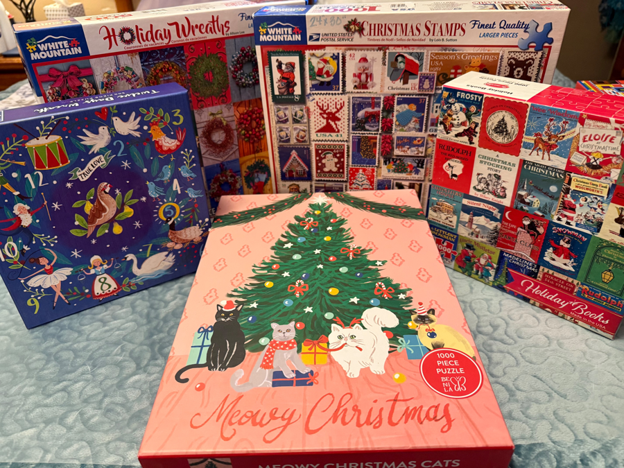 A group of five Christmas -themed puzzles to satisfy your puzzle cravings for the holidays. Mix of 500 and 1000 piece puzzles.