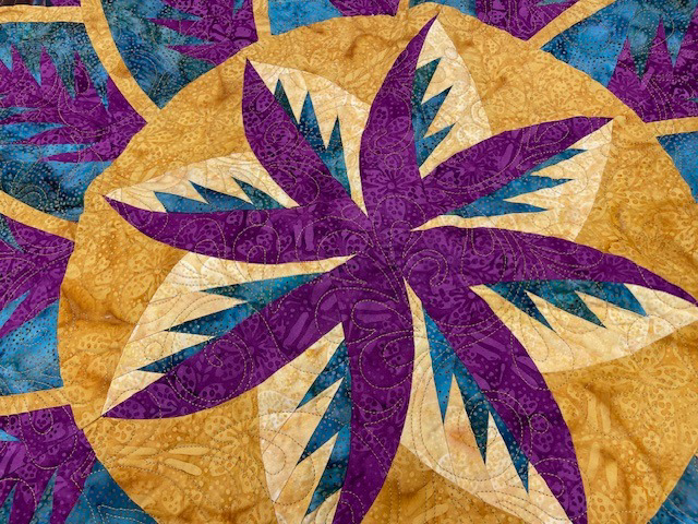 "Christmas Quilt" donated by Finance includes: -Quiltworx Dinner Plate Dahlia Quilt Pattern 99'x99' -HANDMADE by Christal Gustafson