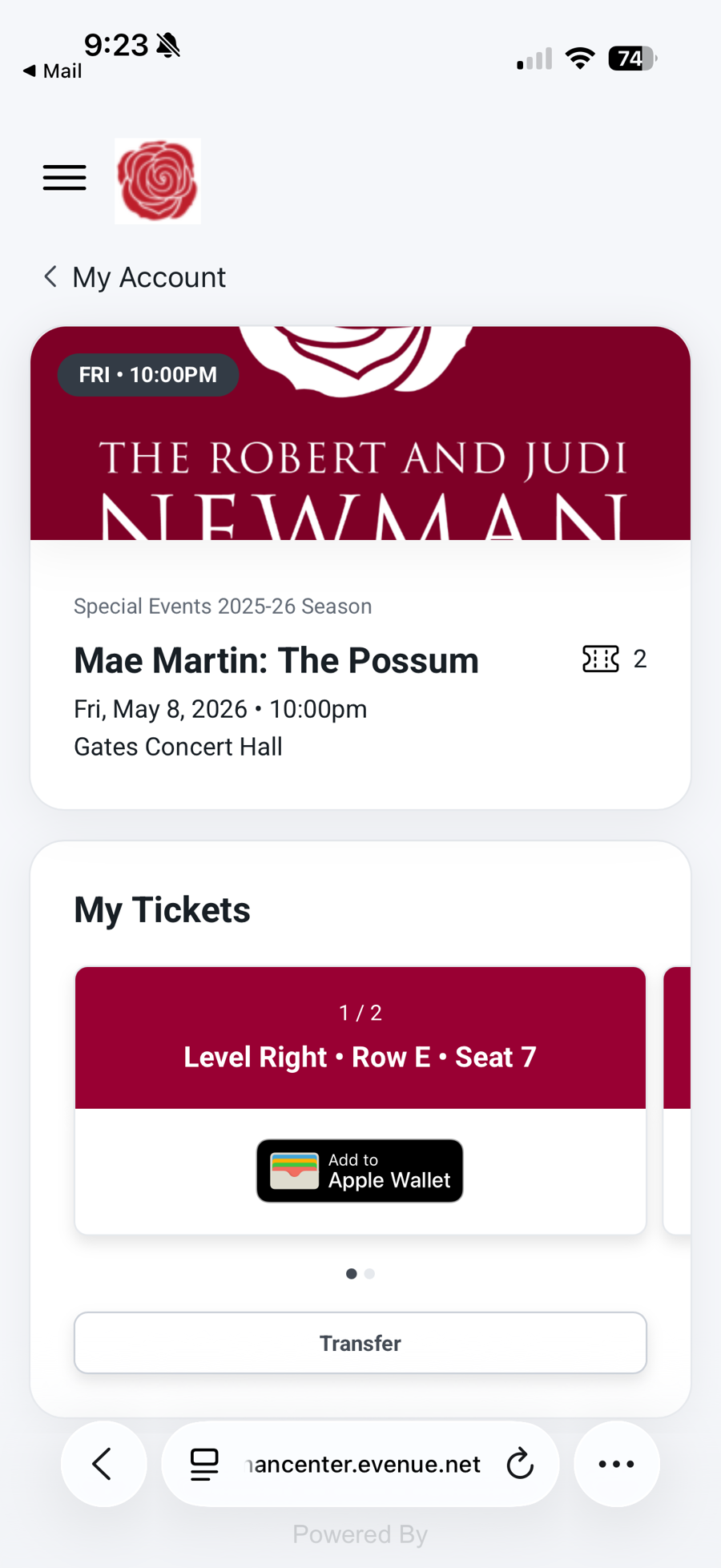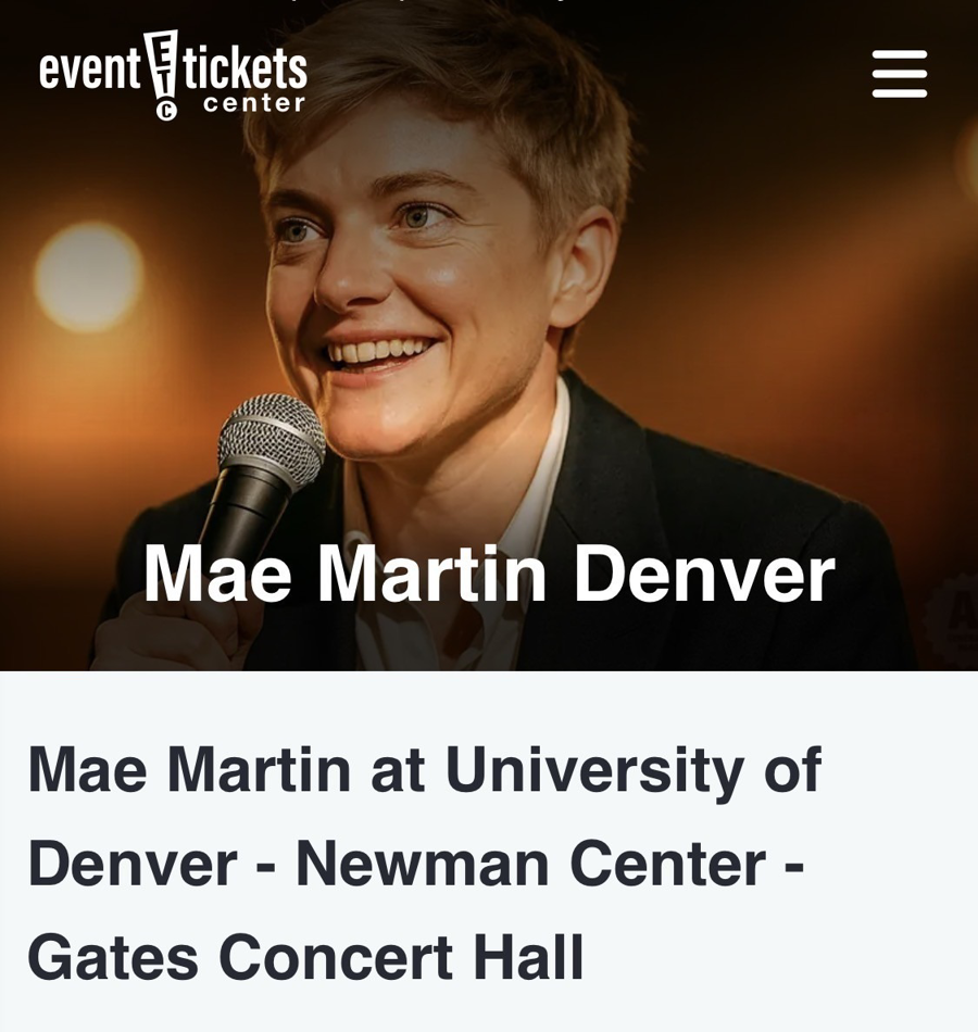 2 tickets to see Mae Martin 5/8/26, 10 PM, at the Gates Concert Hall