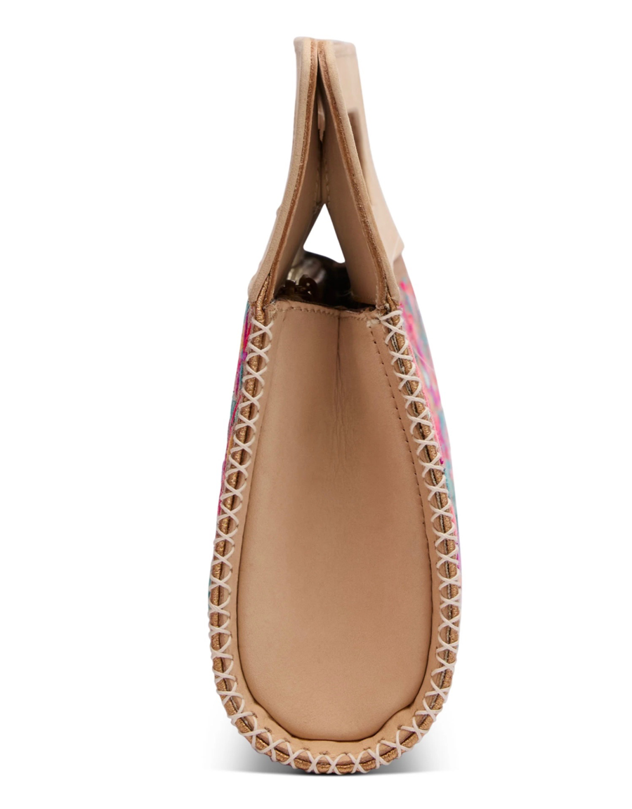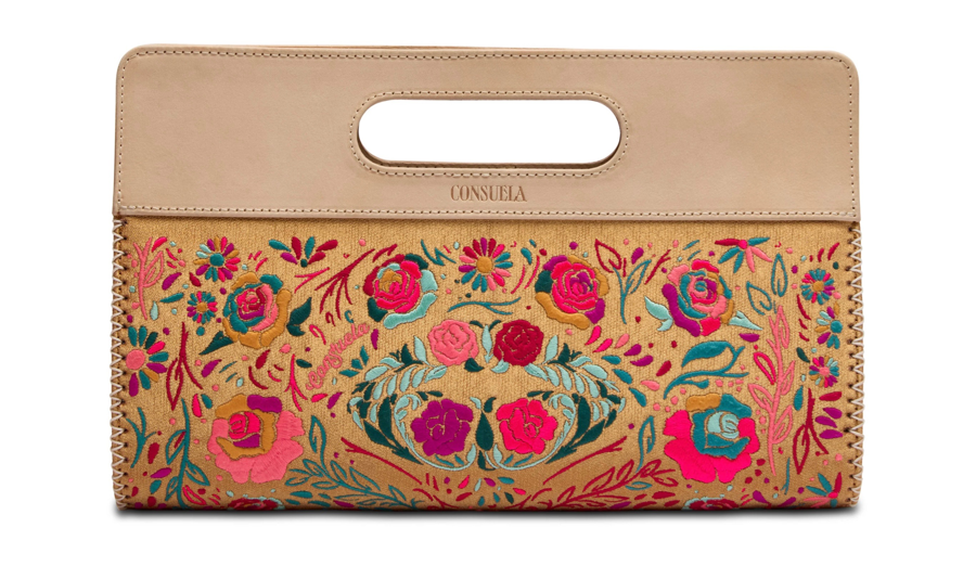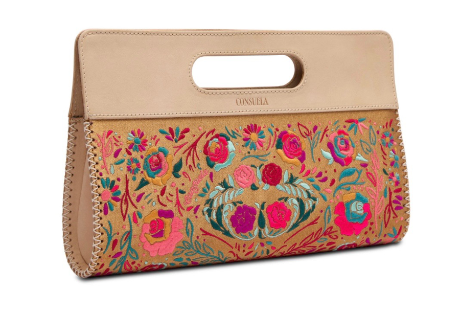 LOVE LOVE LOVE!! SUCH A BEAUTIFUL & UNIQUE CLUTCH WITH BRIGHT FLORAL EMBROIDERY EXTERIOR, TRIMMED IN NATURAL, UNTREATED LEATHER. TOP HANDLE WITH MAGNETIC CLOSURE. BUY-IT-NOW!!! IT WON’T LAST!!