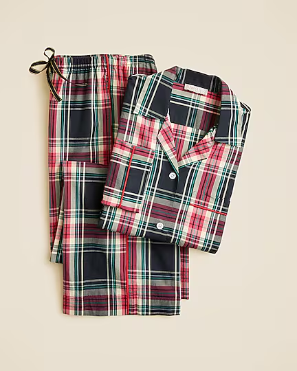Cotton Poplin Long-sleeve pajama Set in Stewart tartan