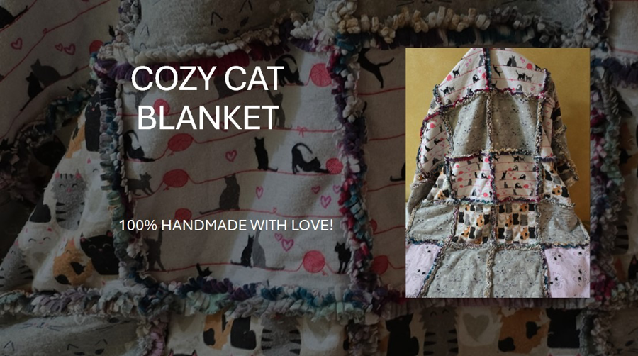 Introducing the Cozy Cat Blanket, a delightful addition to any cat lover's home. This 100% homemade blanket is crafted with love and features adorable prints of cats that will warm your heart. Perfect for snuggling up with your furry friend or adding a touch of charm to your living space, this cozy cat blanket is truly a must-have for anyone who adores these playful companions. Don't miss out on the chance to bring comfort and style into your home with this unique and lovingly made item!