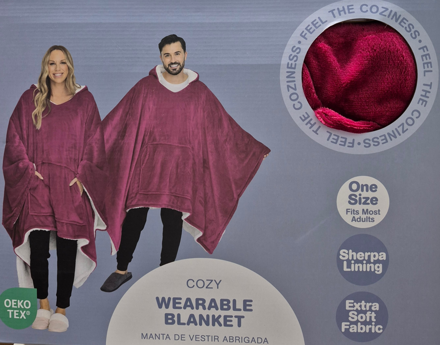 Cozy Wearable Blanket. Extra soft, sherpa lined, one size fits all. Oeko Tex.