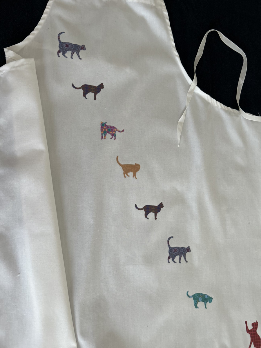 Cat motif - Wear your love of cats with this full muslin apron strewn with calico cats. Perfect for a cozy kitchen!