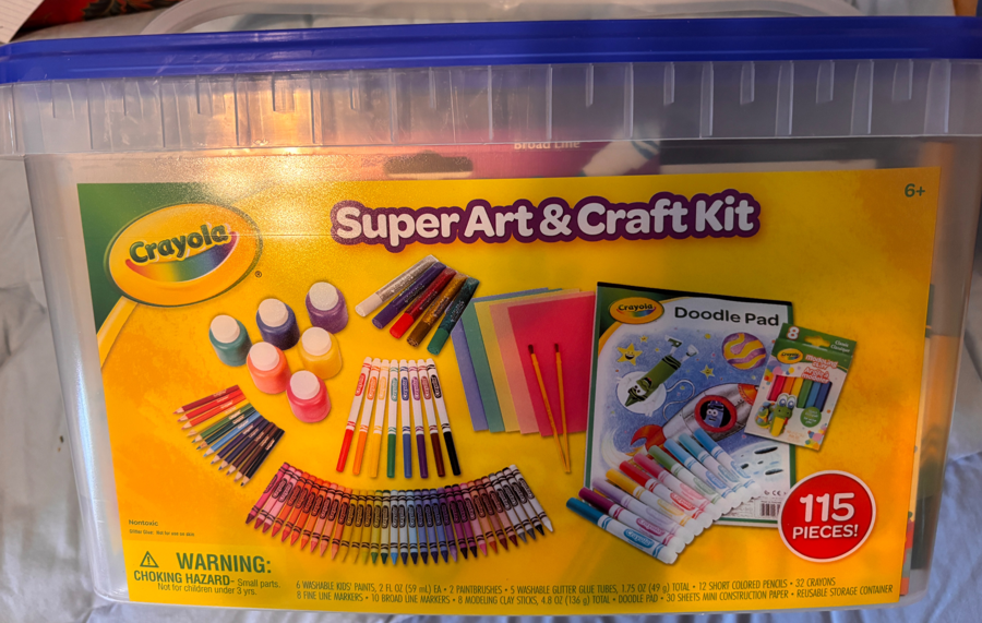What child wouldn't love getting this for Christmas? There is everything needed to stir the creativity of any young person. 115 pieces include markers, paint, colored pencils, construction paper, a doodle pad, modeling clay and more.