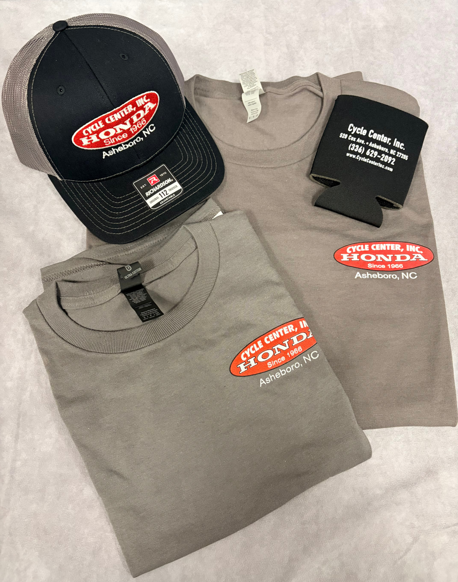 Cycle Center of Asheboro Adult XL T-shirt, Youth Small T-Shirt, Hat & Koozie.