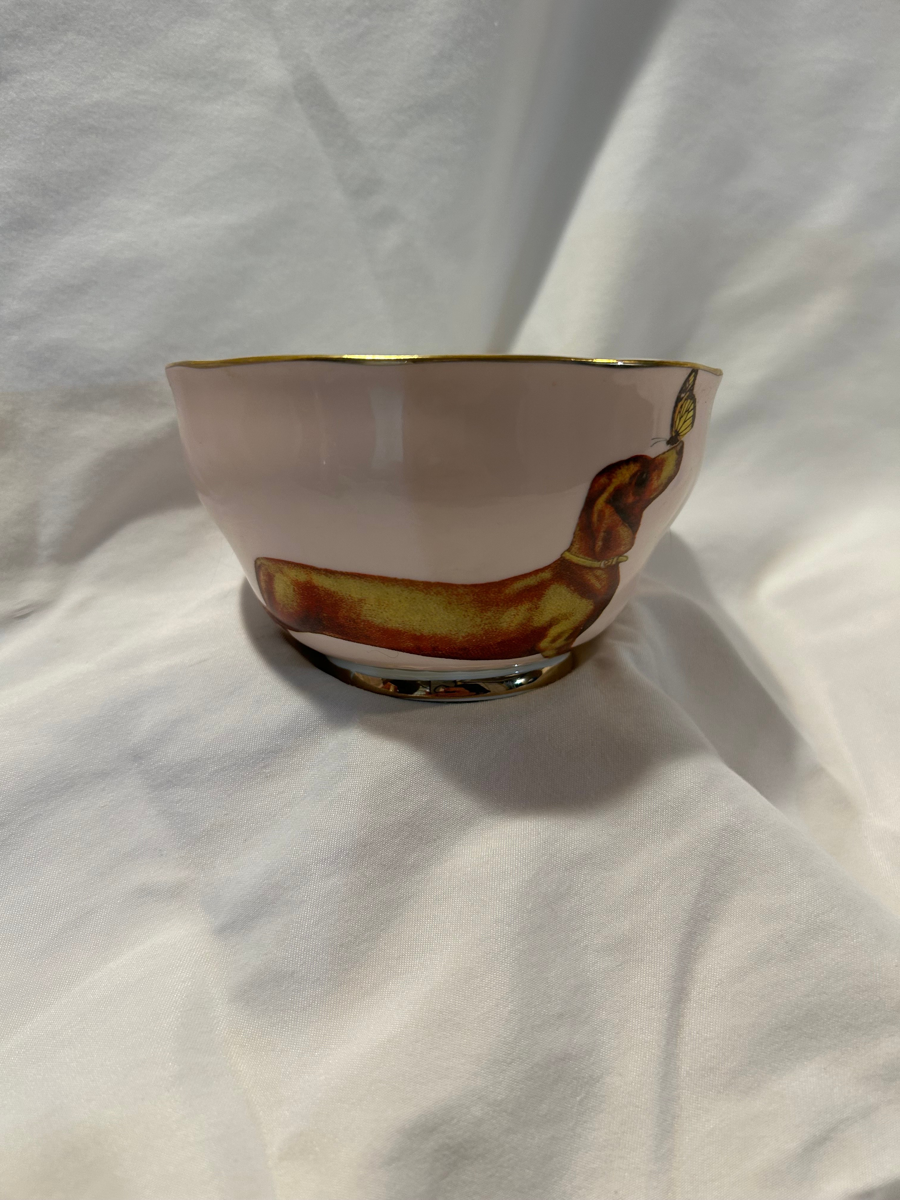 Introducing our exquisite DACHSHUND CANDY DISH, a stunning addition to any home decor. This beautifully designed dish is intricately detailed with elegant gold accents, making it a perfect centerpiece for your table. With a generous capacity of 8 ounces, it is ideal for holding your favorite candies or treats. Celebrate your love for dachshunds while adding a touch of sophistication to your space with this charming and functional piece. Don't miss the chance to own this delightful candy dish that combines artistry and practicality!