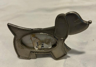 Introducing a charming DACHSHUND DESK FRAME that is perfect for dog lovers and collectors alike. This delightful MINIATURE SILVER DACHSHUND FRAME features an open back design, allowing you to easily display your favorite photos while adding a touch of elegance to your desk or home decor. Crafted with attention to detail, this frame captures the playful spirit of the beloved dachshund breed, making it an ideal gift for any occasion. Whether you're showcasing cherished memories or looking to enhance your workspace, this unique frame is sure to bring a smile to your face. Don't miss out on the opportunity to own this adorable piece!