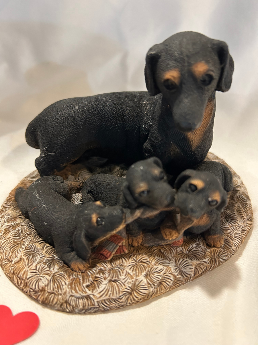 This auction features a heartwarming depiction of dachshund motherhood, capturing the essence of a loving mother with her adorable puppies. The delightful and detailed portrayal showcases the affectionate bond between the dachshund mother and her little ones, highlighting their playful nature and the nurturing instincts of the mother. This artwork is a perfect tribute to the joy and warmth that comes with raising dachshund puppies, making it an ideal addition for any dog lover or art enthusiast. Don't miss the chance to own this enchanting piece that celebrates the beauty of dachshund motherhood!
