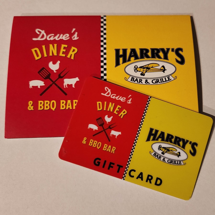 This $50 gift card is good at both Dave's Diner & BBQ Bar and Harry's Bar & Grille.