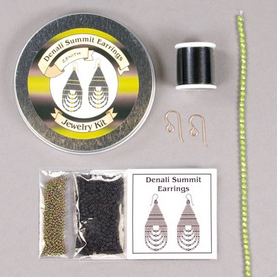 Enjoy creating your own beadwoven Denali Summit Earring in Zenith. Each kit contains all the items you need to make your brick stitch earrings at home. Our project kits are designed and handmade in Maine by Caravan Beads.