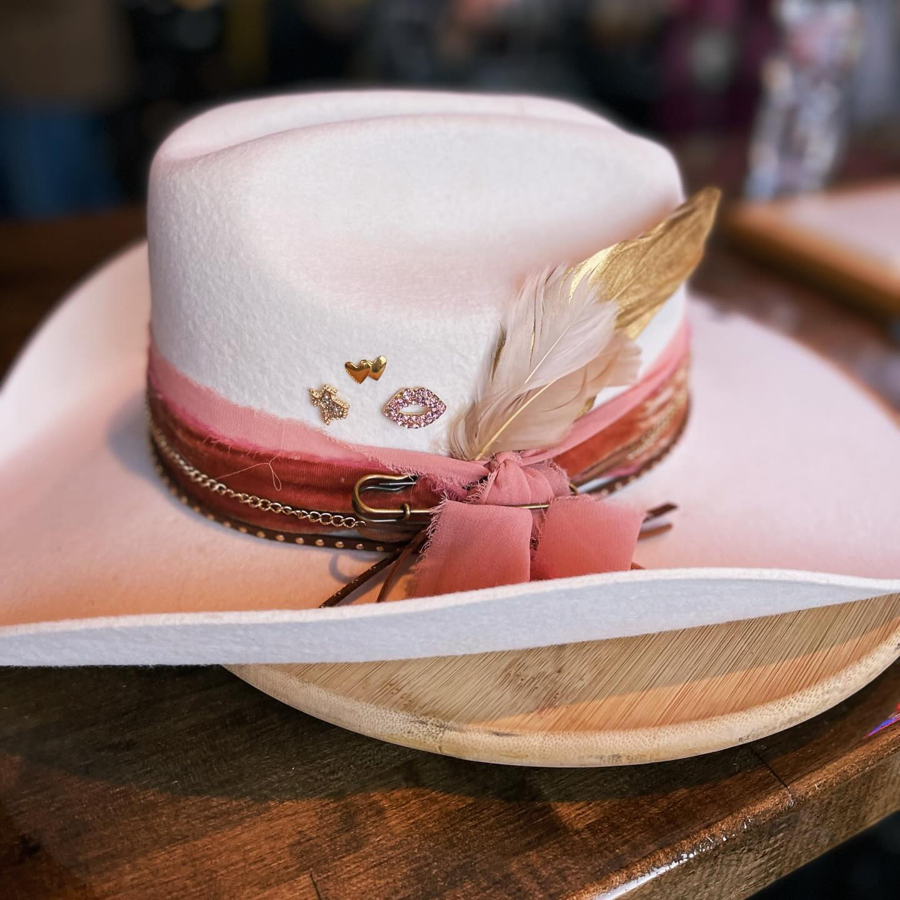 Enjoy a beautiful, custom-branded hat crafted from premium felt and designed to showcase your personal style. This experience invites you to unleash your creativity by designing a one-of-a-kind look—select three ribbons or hat bands, two feathers, and a custom brand featuring either a symbol or your initials. Whether you’re dressing for Rodeo Houston, elevating an everyday outfit, or making a bold personal statement, this handcrafted hat is the perfect blend of timeless Western style and self-expression.