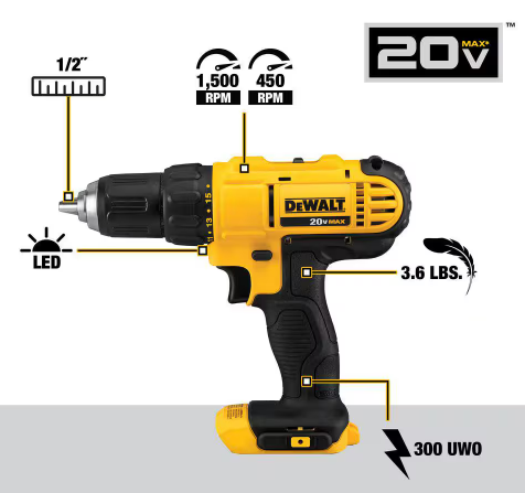 Dewalt 20V Drill, Driver, Charger, & 2 Batteries